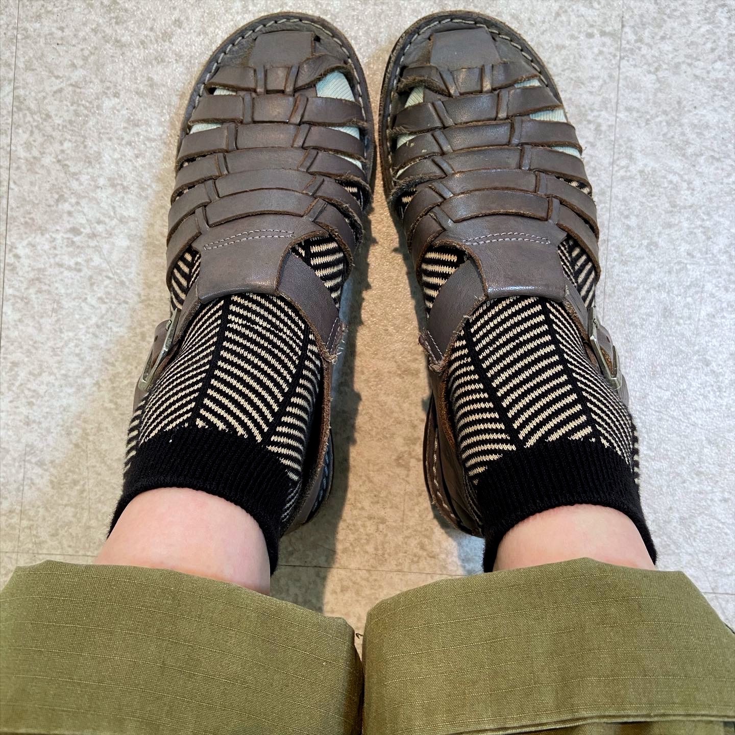 サンダルxヘリンボーン シックな感じに Black x Beige